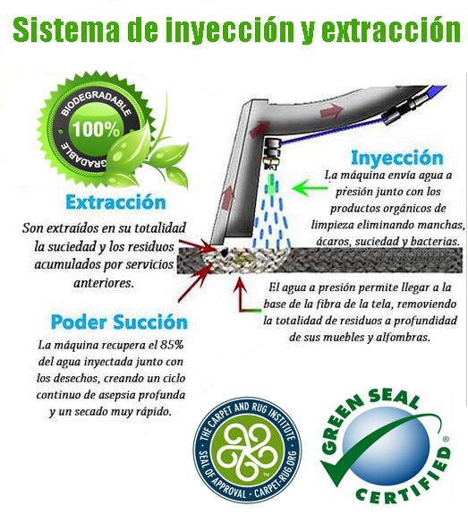 Ya que no maltratan ni dañan las fibras ya que utilizamos productos 100% orgánicos y biodegradables. Desmancha, desinfecta totalmente eliminando la proliferación de ácaros, bacterias, olores y permite un secado rápido debido al sistema de extracción y succión. En Lavaclean usamos 100% productos orgánicos y biodegradables no tóxicos cuidando la salud de tu familia